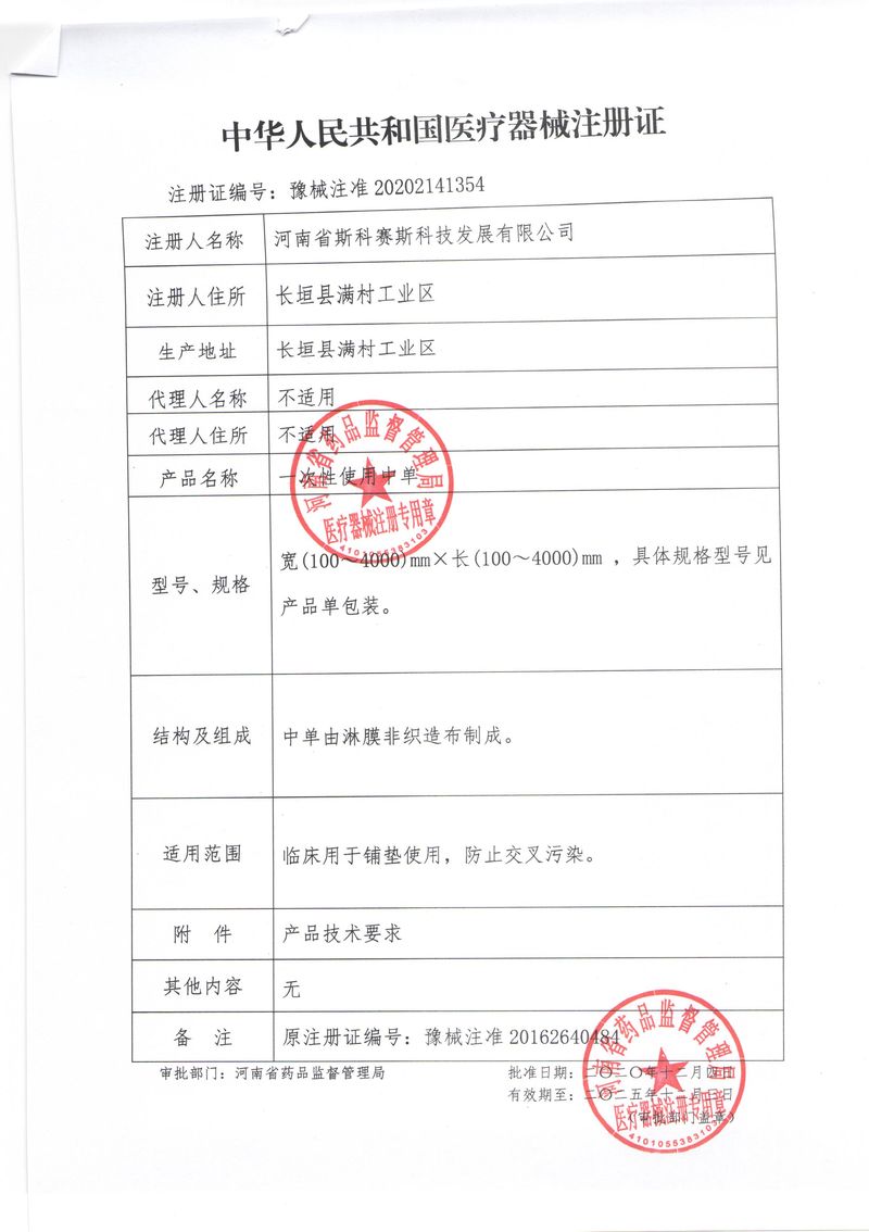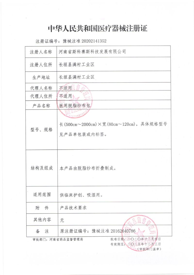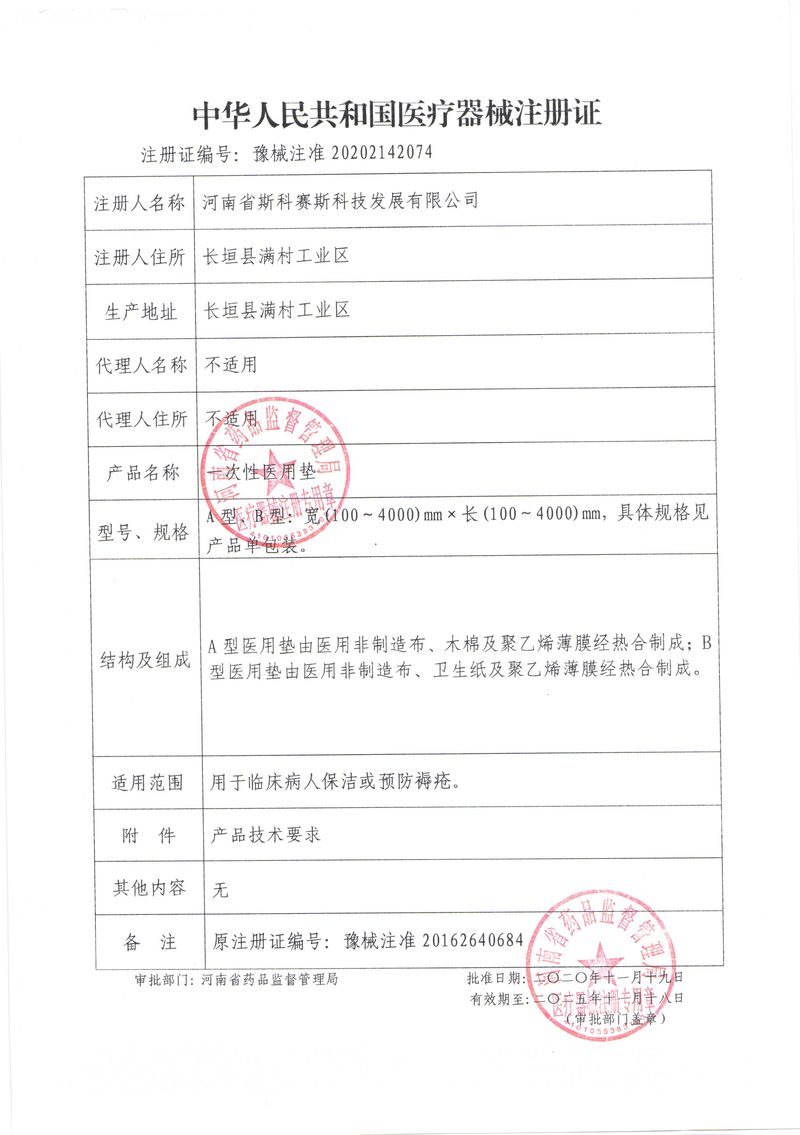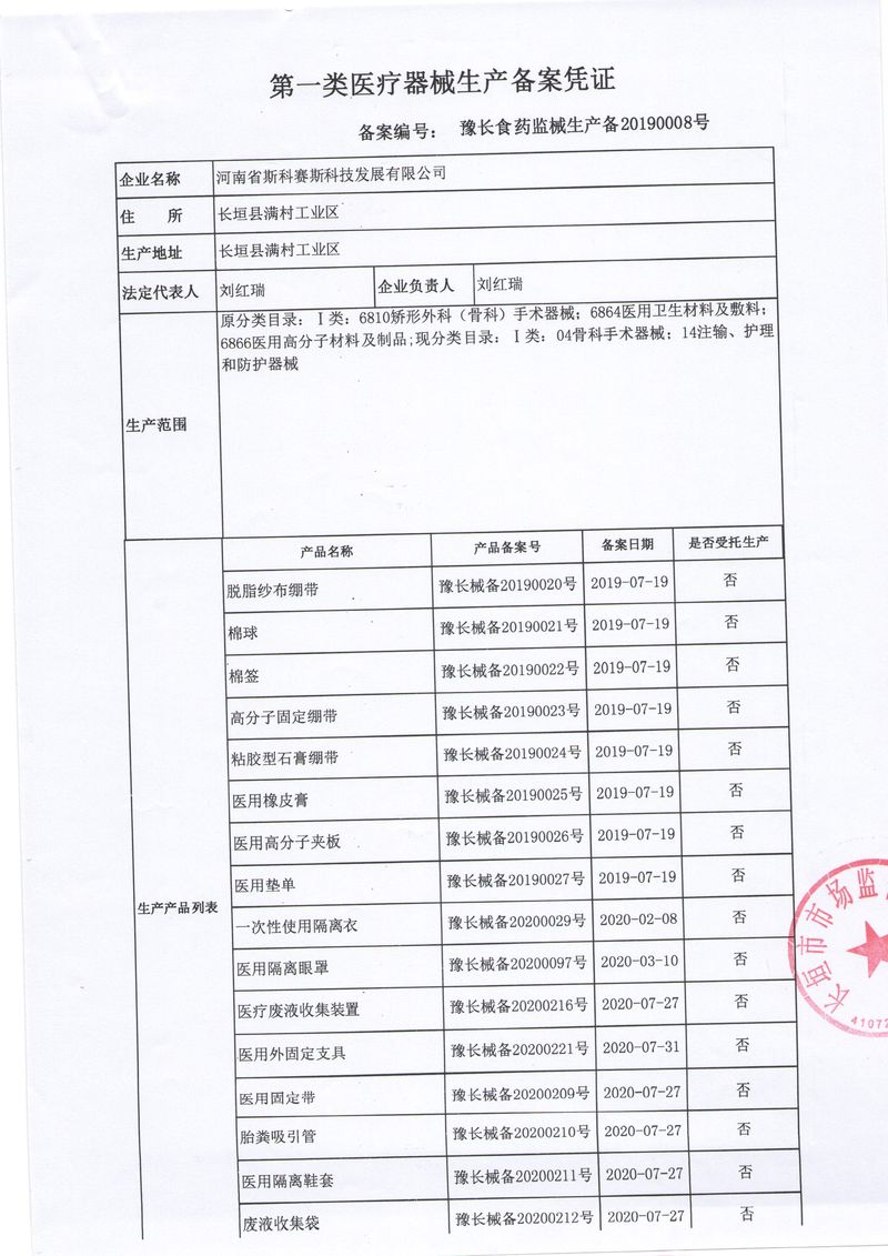 河南省斯科賽斯科技發(fā)展有限公司創(chuàng)建于 2011 年,位于“中國醫(yī)療耗材之都”- 河南省長垣縣,西臨 308 省道,南靠新菏鐵路,北依長濟(jì)高速,交通便捷,經(jīng)濟(jì)發(fā)達(dá),環(huán)境優(yōu)美。斯科賽斯積極進(jìn)入醫(yī)療健康和服務(wù)領(lǐng)域,秉承為用戶創(chuàng)造價值的理念,專注于醫(yī)用耗材解決方案的研發(fā)和運(yùn)營,并為用戶提供完善的產(chǎn)品解決方案;  斯科賽斯主要生產(chǎn)醫(yī)用麻醉系列、醫(yī)用高分子系列、醫(yī)用敷料包系列、醫(yī)用無紡布系列、醫(yī)用防護(hù)系列、醫(yī)用脫脂棉系列、生物材料制品類等七大類、100 多個品種、400 多個規(guī)格的產(chǎn)品。公司占地面積約 30000 平方米,建筑面積20000 平方米,擁有 10 萬級的凈化車間總面積 10000 平方米。擁有國際先進(jìn)水平的生產(chǎn)設(shè)備和檢測儀器,技術(shù)裝備精良,檢測手段完善,為醫(yī)療行業(yè)的不斷發(fā)展進(jìn)步提供保障。公司順利通過 ISO9001、ISO13485 質(zhì)量管理體系認(rèn)證?! ∷箍瀑愃箞猿盅邪l(fā)高科技新產(chǎn)品,力爭在醫(yī)療器械關(guān)鍵領(lǐng)域取得技術(shù)和研發(fā)的重大突破;立足國內(nèi)和國際兩個市場,逐步實現(xiàn)管理理念、經(jīng)營機(jī)制、人力資源、技術(shù)、產(chǎn)品、市場等全方位對接,提高企業(yè)的核心競爭力;過去的歲月里,斯科賽斯砥礪前行,誠信務(wù)實,銳意進(jìn)取,不斷創(chuàng)新,用自己的睿智和辛勞,以富有責(zé)任感的使命,在探索中追求,在追求中超越,致力于成為值得信賴的醫(yī)療用品生產(chǎn)企業(yè)!在未來的日子里,斯科賽斯將一如既往豪情滿懷,信心百倍,攜手并肩,執(zhí)著追求,向更高的的目標(biāo)前進(jìn),鑄造新的輝煌!